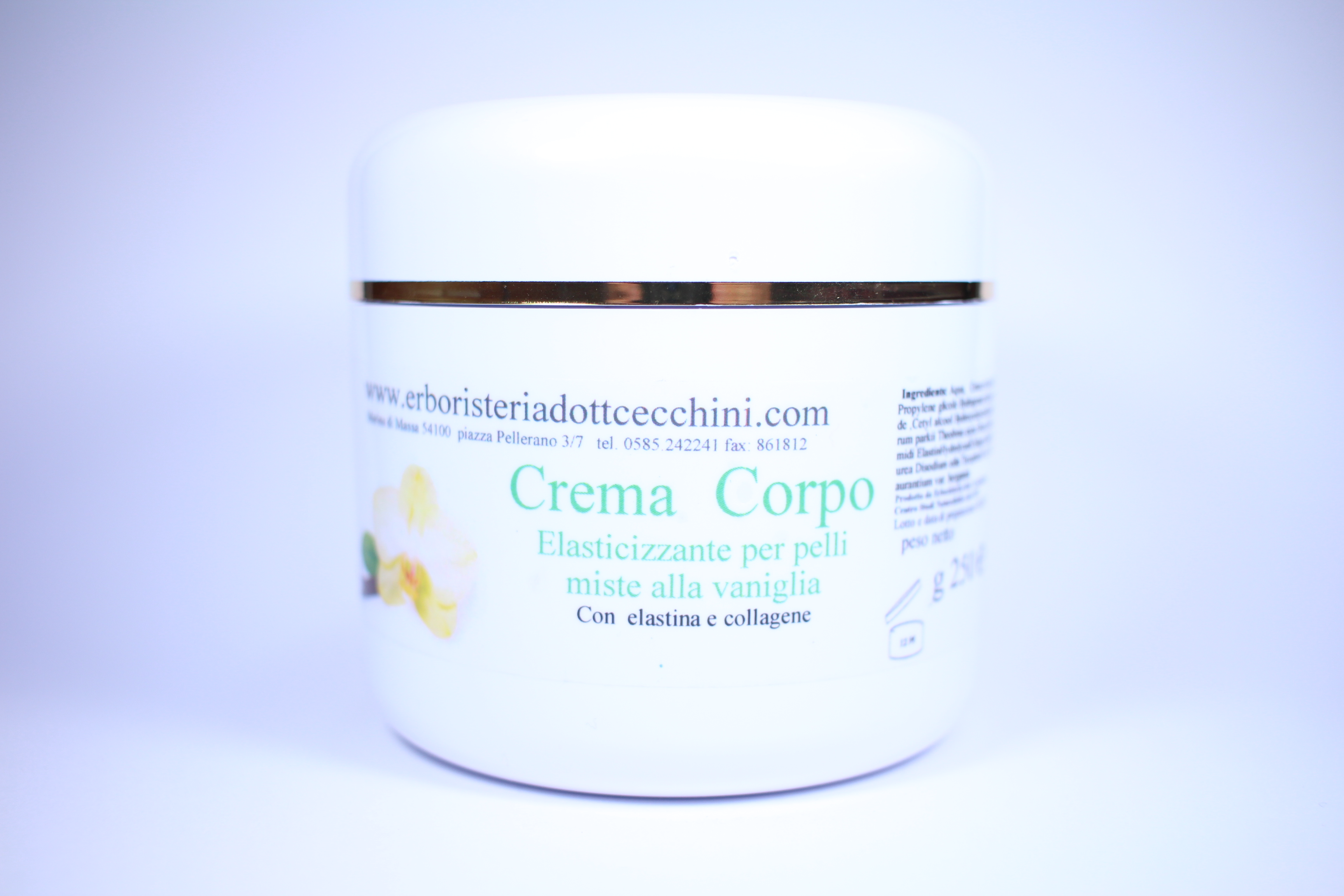 Crema anallergica fortemente elasticizzante adatta in gravidanza, per addome, glutei, gambe, adatta in caso di pelle secca e molto secca, pelle morta in superficie , screpolature . Evita la formazione di smagliature. Formulazione adatta per pelli reattive Risultati visibili fin dalla prima applicazione, il trattamento dona idratazione e radiosità alle pelli con segni d’invecchiamento che vengono così ridotti a favore di una tonicità e compattezza. Massaggiare alla sera e dopo il bagno. Particolarmente indicata dopo l”esposizione al sole per zone estese : gambe, braccia, glutei, seno, mani, piedi etc setosità immediata!