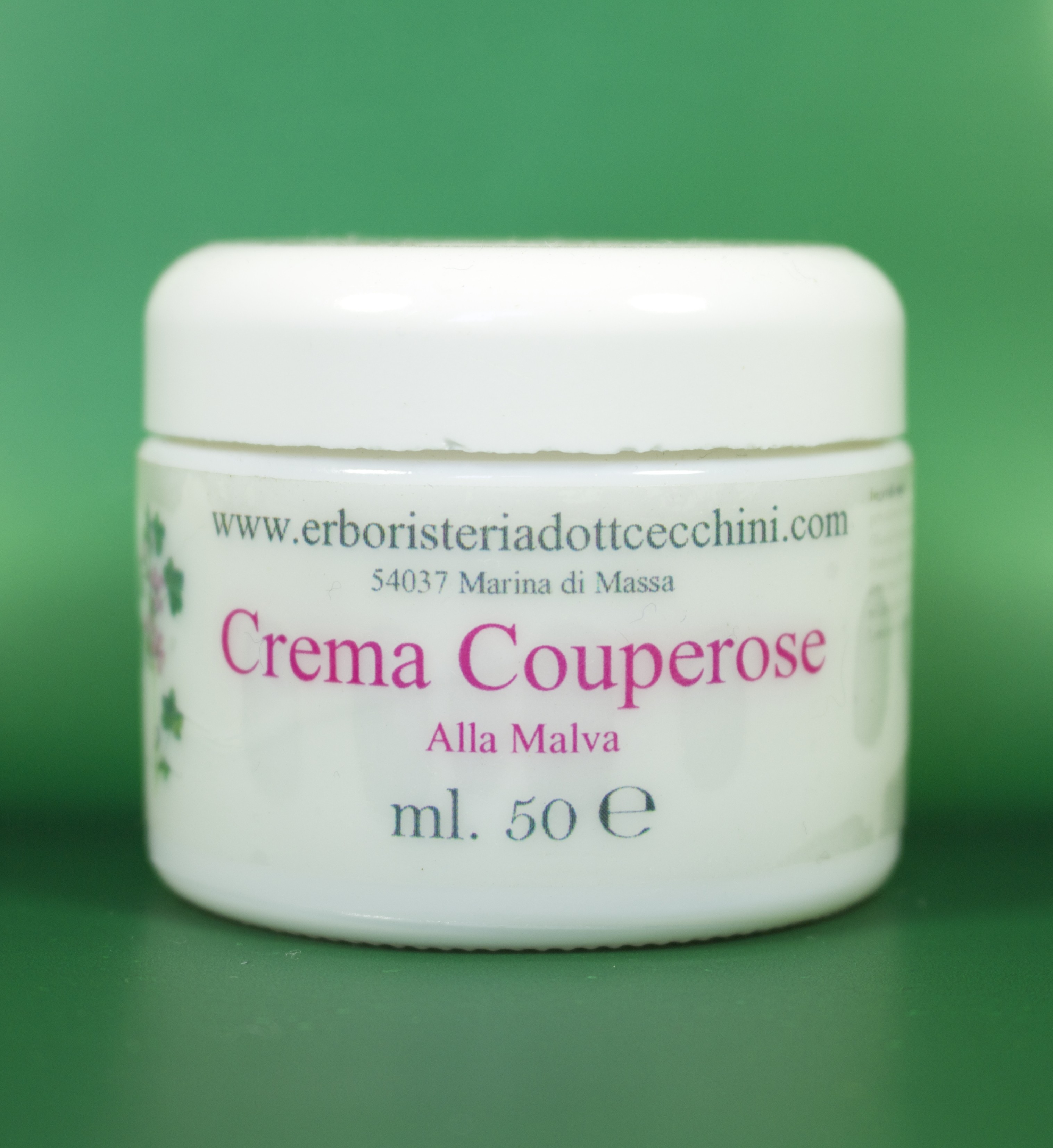 Descrizione: Crema Couperose a base di Malva, Mirtillo nero ed Hamamelis , idratante,elasticizzante, decongestionante ed astringente nei confronti di capillari superficiali, previene rossore tipico del periodo invernale
