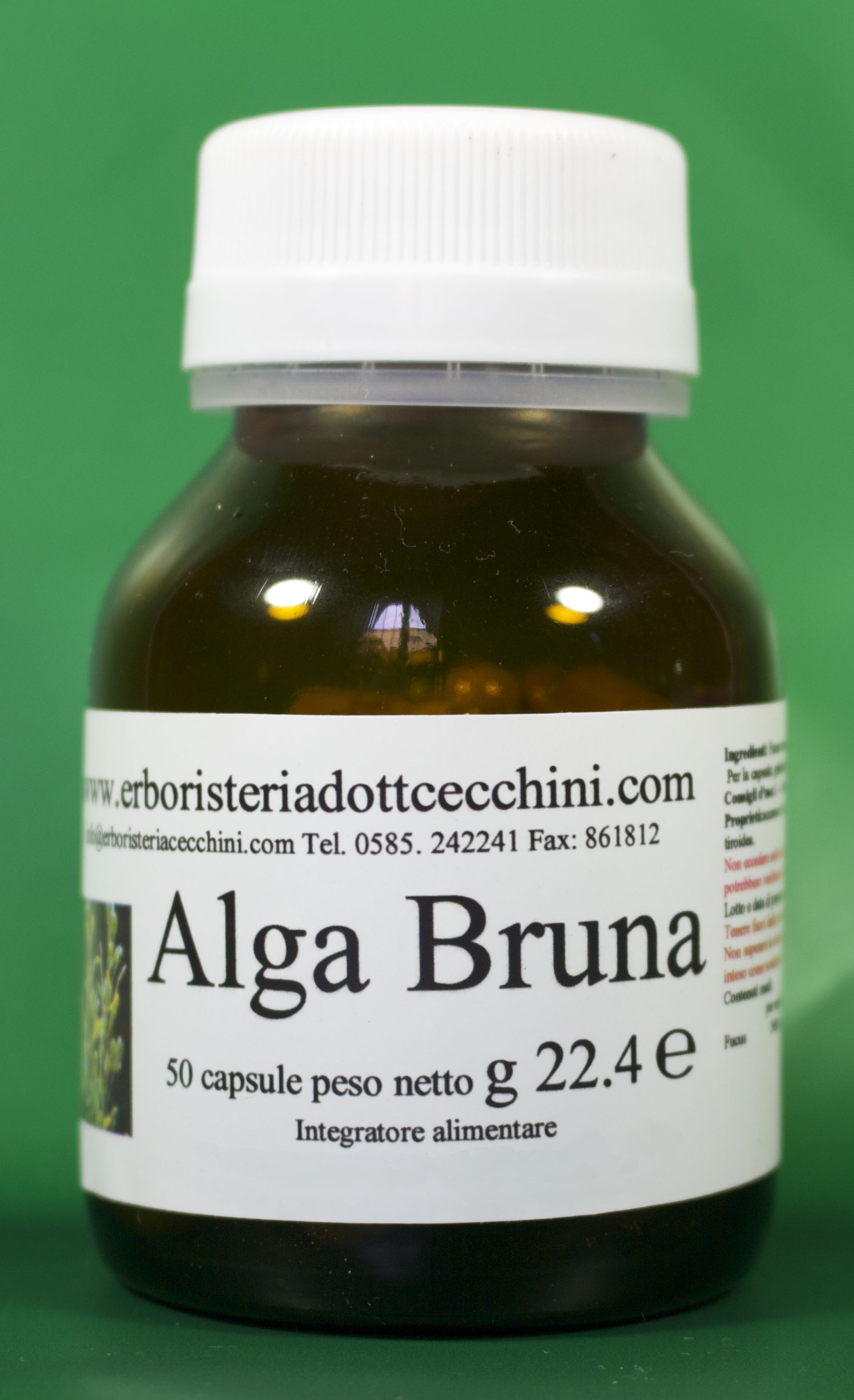 Indicazioni: Dimagrante, stimolante del metabolismo, riequilibrante dell’Intestino in caso di stitichezza. Riequilibrante della fame. L’Alga Bruna non è adatta in caso di noduli tiroidei e nel caso si seguano terapie farmacologiche tiroidee.Si consigliano da 1 a 2 capsule al giorno