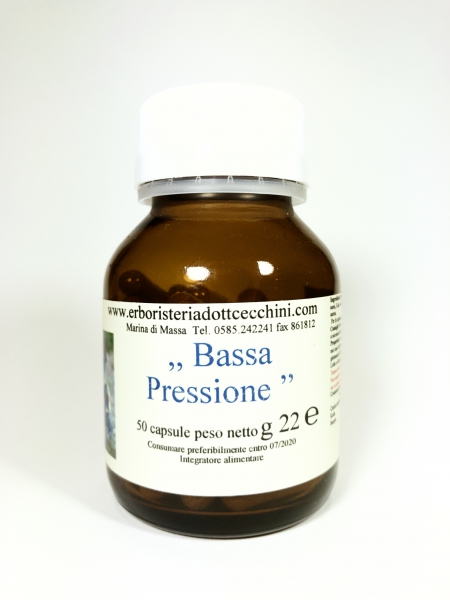 Descrizione:”Bassa Pressione” Integratore naturale in capsule contro la Pressione Arteriosa Bassa (Ipotensione), “Bassa Pressione”risolve i fastidi correlati quali debolezza fisica, giramenti di testa, difficoltà di concentrazione. Non provoca ritenzione idrica.