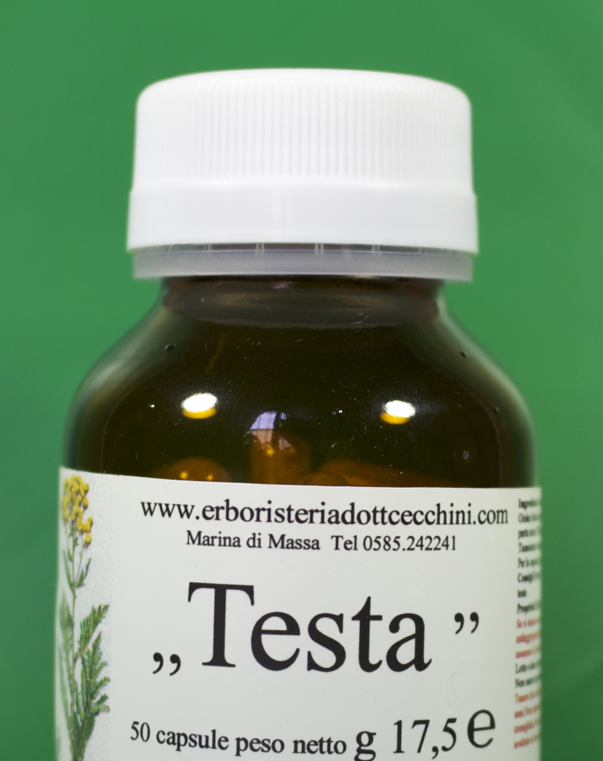 Indicazioni: “Testa” integratore naturale in capsule adatto in caso di mal di testa, alle prime avvisaglie assumere 2 capsule.