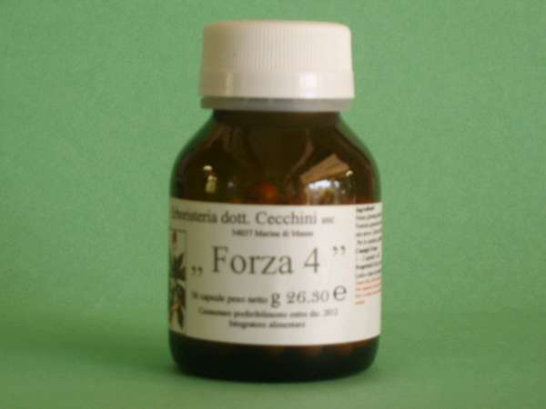 “Forza 4” è ottimo integratore in capsule con effetto ricostituente, aumenta il tono muscolare, fortemente  rinvigorente , sprint per  corpo e  mente, adatto nei peridi di stanchezza, svogliatezza. Favorisce il recupero dell’ottimale forma fisica e dell’ideale peso corporeo